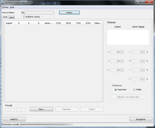 L'écran Gestion de table de couleurs alternatives s'affiche.
