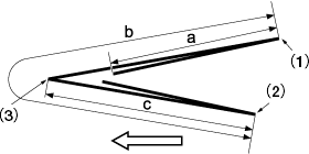 Mesurez les longueurs (a), (b) et (c) du papier imprimé.