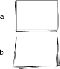 b :si la largeur définie est inférieure à la largeur réelle du papier, le défaut d'alignement (biais) se produit dans un sens.