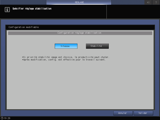 Sélectionnez la vitesse de sortie ou la stabilité de la qualité comme priorité de la tâche.