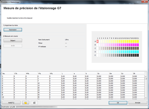 L'écran Mesure de la précision de l'étalonnage G7 s'affiche.