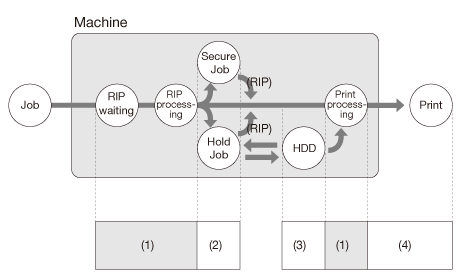 AccurioPro Print Manager gère les tâches des quatre phases suivantes.