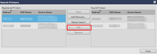 L'imprimante cible est ajoutée à la liste Imprimantes enregistrées.