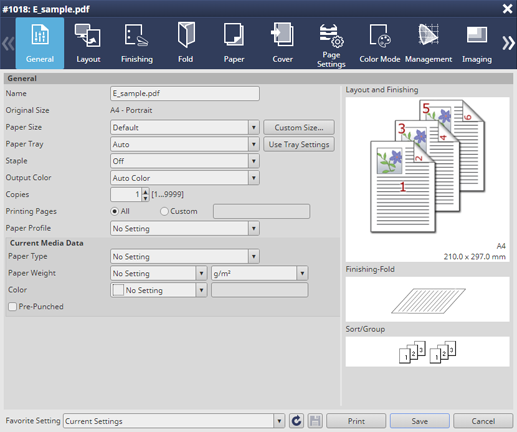 Impression | Enregistre les réglages actualisés et imprime un document. |