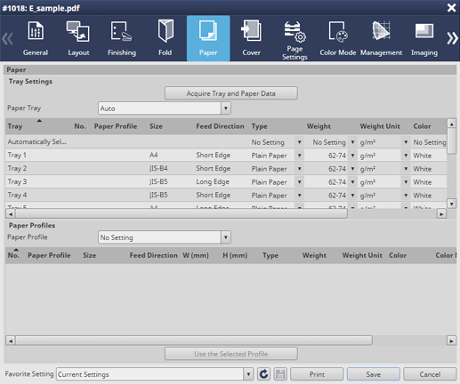 Vous pouvez configurer le papier du réglage d'impression.