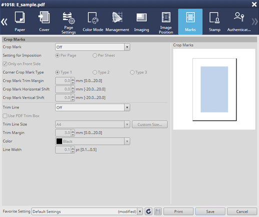 Ligne de massicotage s'affiche lorsque Modifier tâche est défini sur PS, PDF ou PDF (APPE).