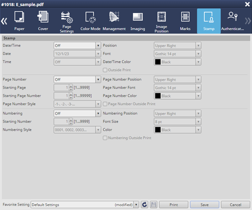 Vous pouvez définir le tampon du réglage d'impression.