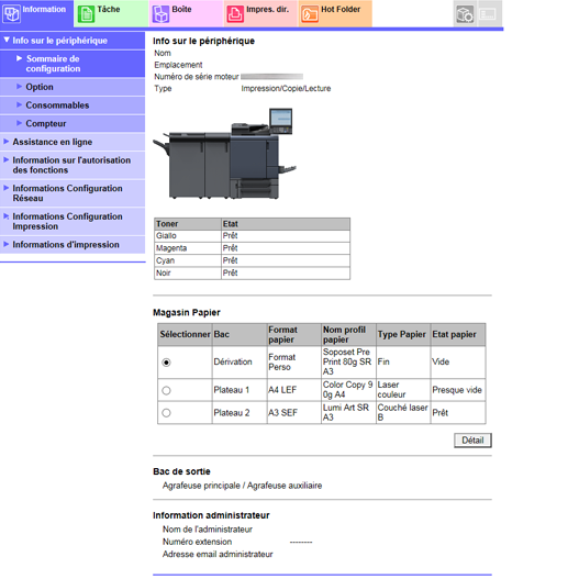 Pour des détails sur l'utilisation de PageScope Web Connection, voir À propos de PageScope Web Connection.