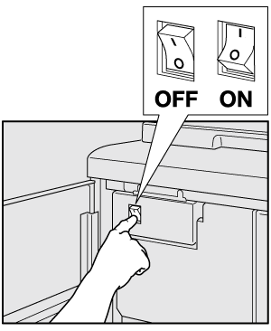 Lorsque vous remettez l'interrupteur principal sur marche immédiatement après l'avoir mis sur arrêt, remettez-le sur arrêt, vérifiez que le voyant d'alimentation du panneau de contrôle est éteint et patientez au moins 10 secondes avant remettre l’interrupteur principal sur marche. Si l'interrupteur principal est remis sur la position ON (Marche) dans les 10 secondes ou moins, la machine pourrait ne pas fonctionner correctement.