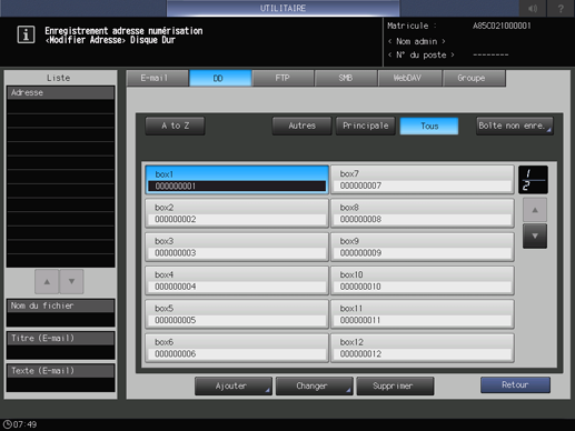 Pour utiliser la fonction de copie ou de numérisation ou pour définir ou configurer les paramètres machine, utilisez l'écran tactile.