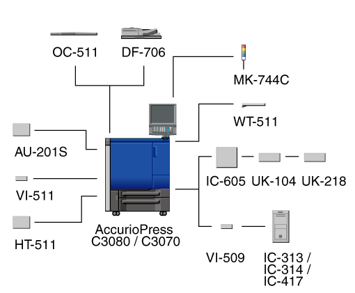 Pour connecter deux unités ou plus de l'unité de départ papier PF-707m alors que cette machine est équipée du contrôleur d'image IC-313 sans l'optimiseur de qualité IQ-501 et le kit d'interface vidéo VI-511, montez systématiquement le kit de mise à niveau UK-111 sur cette machine.