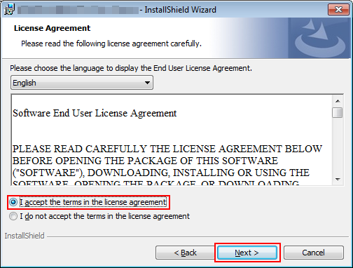 Vérifiez le contenu et cliquez sur J'accepte les termes du contrat de licence. Cliquez sur Suivant.