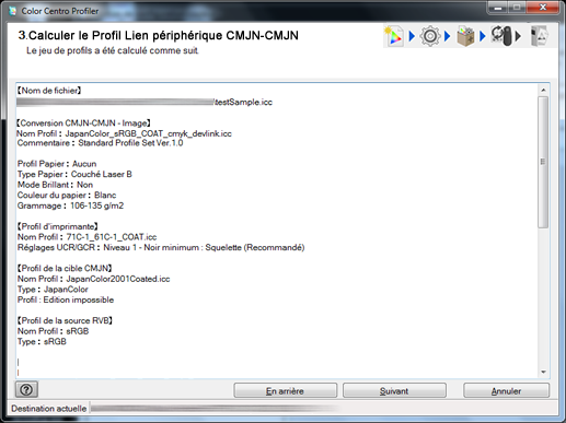 Color Centro Profiler se referme et l'écran Gestion de profil réapparaît.