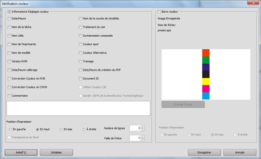 2. Cliquez sur Informations Réglages couleur, puis sélectionnez les éléments.