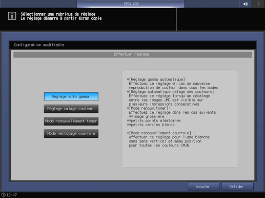 Appuyez Réglage auto gamma et appuyez sur Valider.