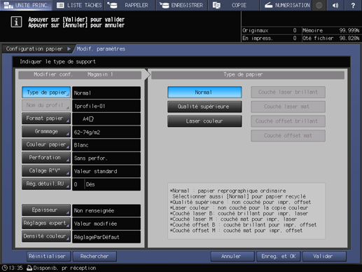 Appuyez sur Réglage couleur type papier de Configuration expert.