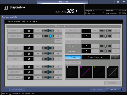 Sur l'écran IMPRESSION, appuyez sur Réglage qualité.