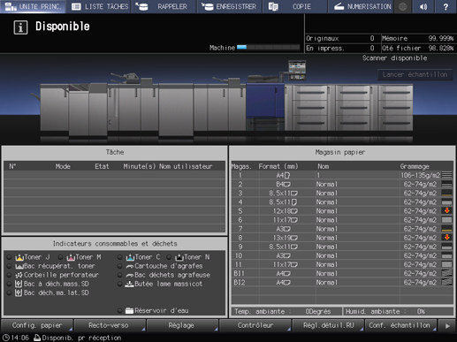 Sur l'écran tactile de l'imprimante, appuyez sur Réglage sur l'écran UNITÉ PRINC.