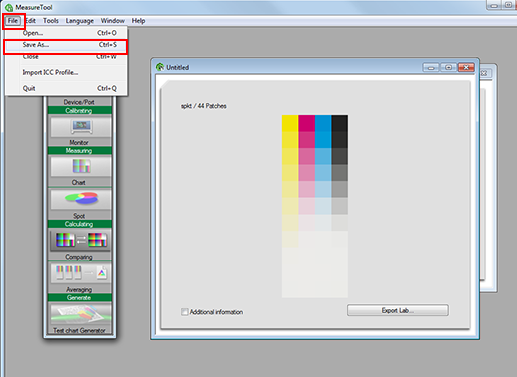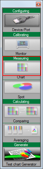L'application dédiée est également requise pour mesurer les mires de test. L'application varie en fonction de votre spectrophotomètre. Pour i1Pro/i1Pro2 et i1iSisXL, utilisez l'outil de mesure X-rite. Pour FD-5 BT et FD-9, utilisez FD-S2w. Installez l'outil à l'avance.