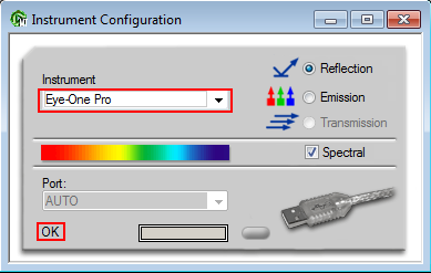Exemple : Eye-One Pro (i1Pro) est sélectionné.