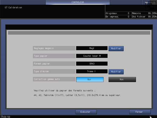 Pour imprimer convenablement les mires, sélectionnez un magasin dans lequel le format de papier approprié est chargé.