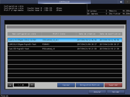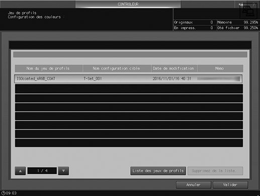 Sélectionnez un jeu de profils et appuyez sur Valider.