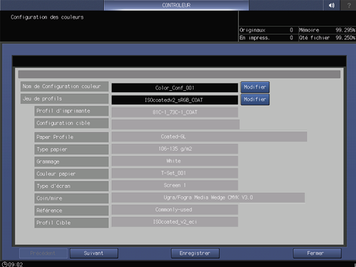 Associez la configuration cible créée à un jeu de profils et créez une configuration des couleurs. Cette section décrit l'utilisation d'un jeu de profils existant.