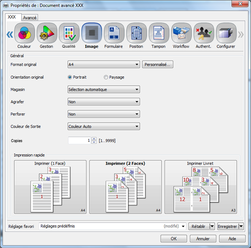 Dans Impression sous l'onglet Workflow, sélectionnez Patienter.