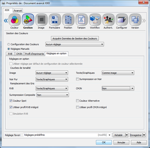 Vous pouvez appliquer les couleurs spot enregistrées à l'impression.