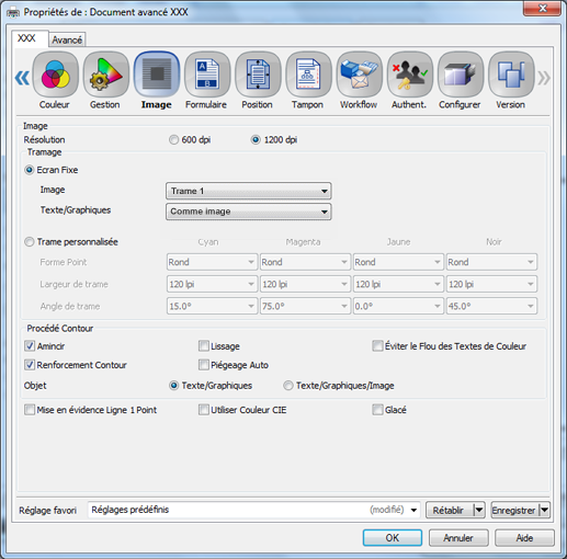 L'utilisateur peut changer la trame dans le pilote d'imprimante à l'impression.