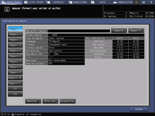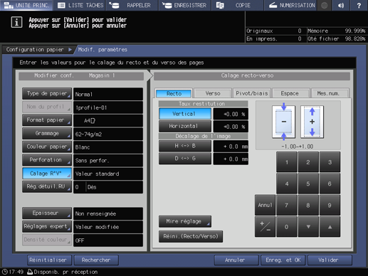 Lorsque vous effectuez le calage recto pour un papier de marque, grammage ou format nouveau, appuyez sur Enreg. et OK et passez à l'étape suivante.