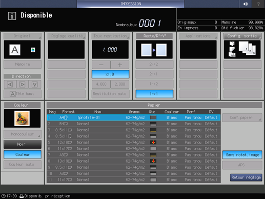 1. Appuyez sur Configuration papier sur l'écran UNITÉ PRINC.