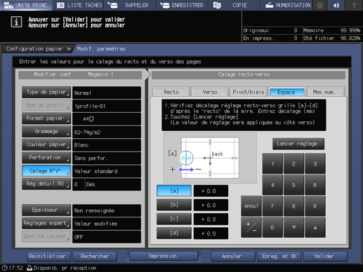 Pour corriger le décalage pour une nouvelle marque de papier, un nouveau grammage ou un nouveau format, appuyez sur Enreg. et OK et passez à l'étape suivante.