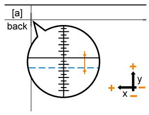 Par exemple, lorsque la ligne noire du verso est décalée (côté positif) de 1,5 mm de la ligne bleue en pointillés du recto comme illustré sur la figure, entrez une correction de « -1,5 » pour déplacer (côté négatif) la ligne noire du verso de 1,5 mm.