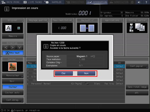 Explication supplémentaireVous pouvez maintenant définir une tâche en impression.