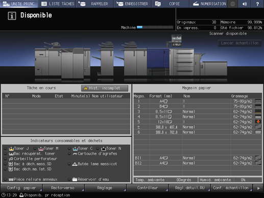 L'écran UNITÉ PRINC. s'affiche en premier dans le réglage par défaut. Pour afficher l'écran COPIE, appuyez sur l'onglet COPIE de l'écran UNITÉ PRINC.
