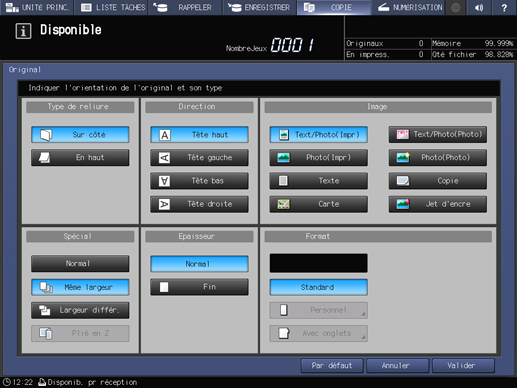 Appuyez sur l'onglet COPIE pour afficher l'écran COPIE.