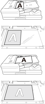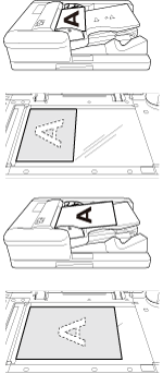 Spécifiez l'orientation de l'original placé dans le chargeur ADF ou sur la vitre d'exposition. Si vous ne paramétrez pas l'orientation de l'original placé dans le chargeur ADF ou sur la vitre d'exposition, vous risquez de ne pas obtenir les résultats de copie escomptés, surtout si réalisez des copies sous les conditions suivantes.