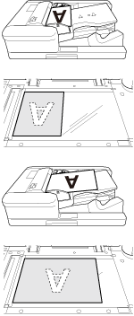 | Original placé tête (haut) vers le côté droit de l'ADF. Ou original placé sur la vitre d'exposition, tête (haut) vers le côté droit de la vitre d'exposition. |