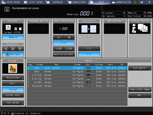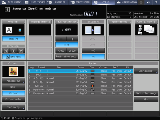 Appuyez sur l'onglet COPIE pour afficher l'écran COPIE.