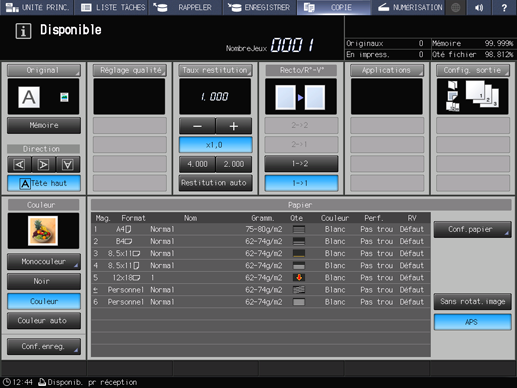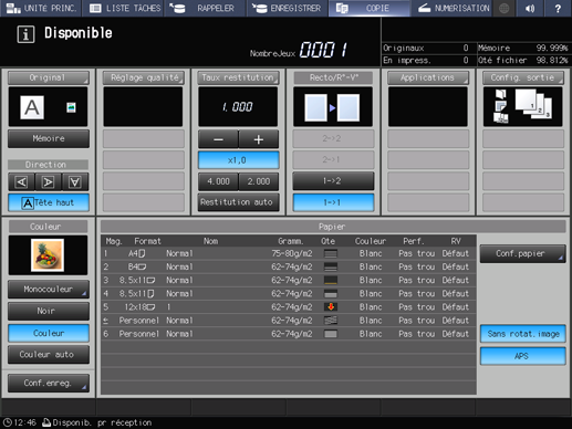 Appuyez sur l'onglet COPIE pour afficher l'écran COPIE.