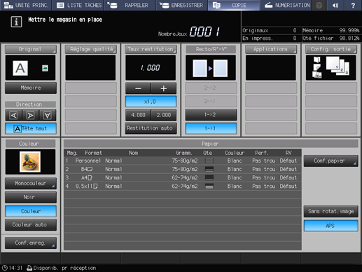 Appuyez sur l'onglet COPIE pour afficher l'écran COPIE.