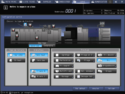 condition préalableLorsque la machine est réinitialisée, le réglage Sur côté est restauré.