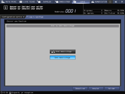 Spécifiez s'il faut utiliser la fonction de massicotage en sélectionnant Avec massicotage ou Sans massicotage.