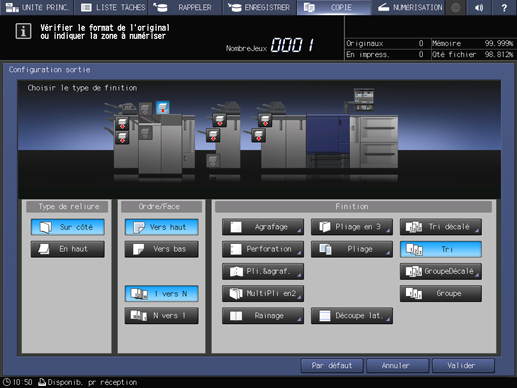 Appuyez sur Valider sur l'écran Réglage sortie pour revenir à l'écran COPIE.