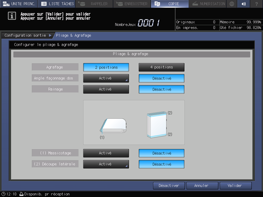 Sélectionnez 2 positions ou 4 positions pour Agrafage.