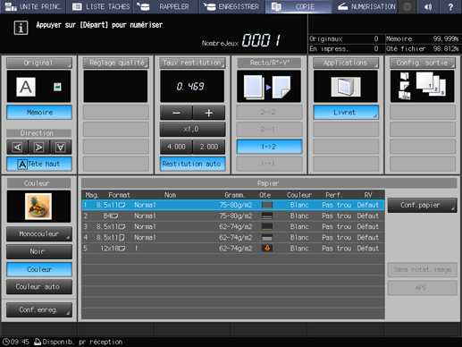 Appuyez sur l'onglet COPIE pour afficher l'écran COPIE.