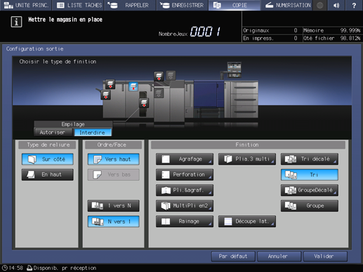 Explication supplémentaireSélectionnez Vers bas ou Vers haut et 1 vers N ou N vers 1 sous Ordre/Face, selon les besoins.