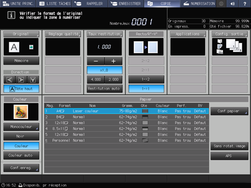 A la fin de la copie d'interruption, les réglages de la tâche précédente sont restaurés automatiquement.