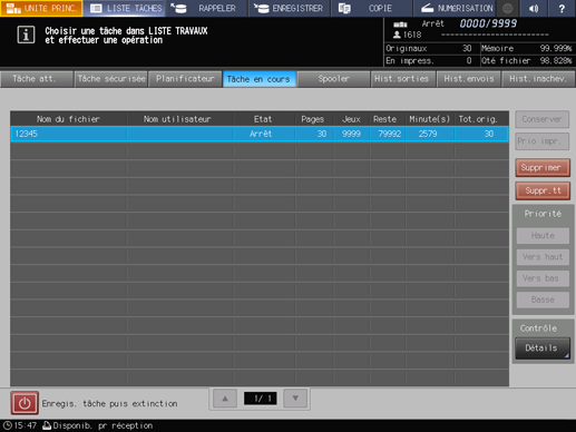 La poursuite des tâches le lendemain est possible si le contrôleur d'image IC-605 est installé.